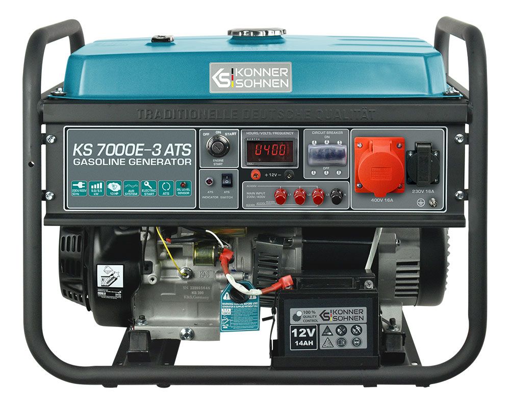 Модель генератора KS 7000E-3 ATS від торгової марки «Könner & Söhnen» має кілька унікальних особливостей, серед яких важлива функція ATS (АВР — автоматичне введення резерву). Ця функція дозволяє генератору автоматично включатися в момент відключення електропостачання та автоматично вимикатися при поверненні електроживлення. Це особливо зручно для використання генератора на об'єктах, де важливо забезпечити неперервне живлення, наприклад, в домогосподарствах, де є особи, які не можуть самостійно вмикати або вимикати генератор.