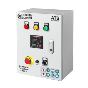 Модель блоку АВР KS ATS 1/40HD підходить для одноциліндрових дизельних генераторів «Könner&Söhnen» з абревіатурою ATSR в артикулі для автоматичного запуску генератору в однофазному режимі роботи генератора та з однофазною мережею 230В.