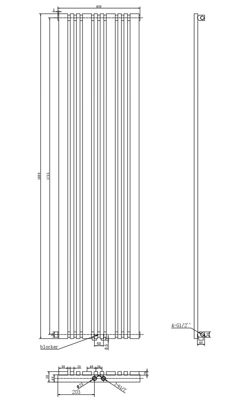 Дизайнерський вертикальний радіатор опалення ARTTIDESIGN Lucca 10/1800/456/50 белый матовый