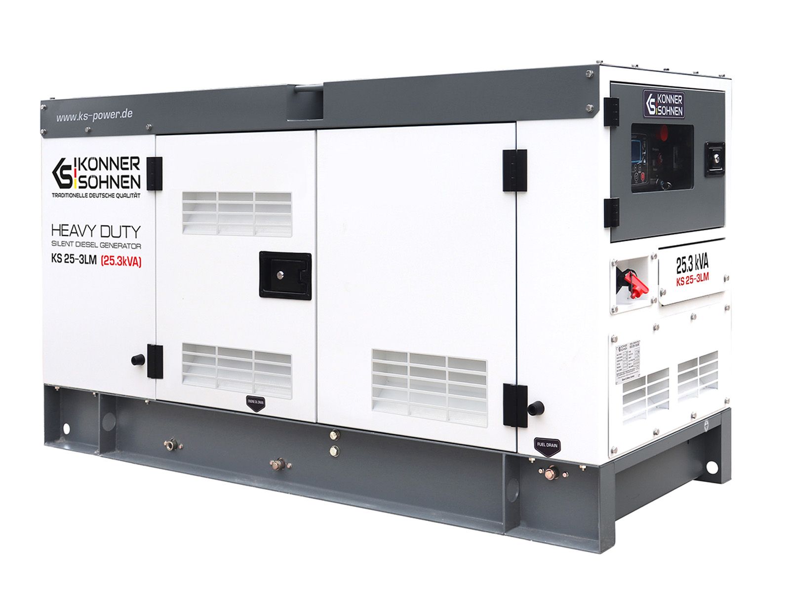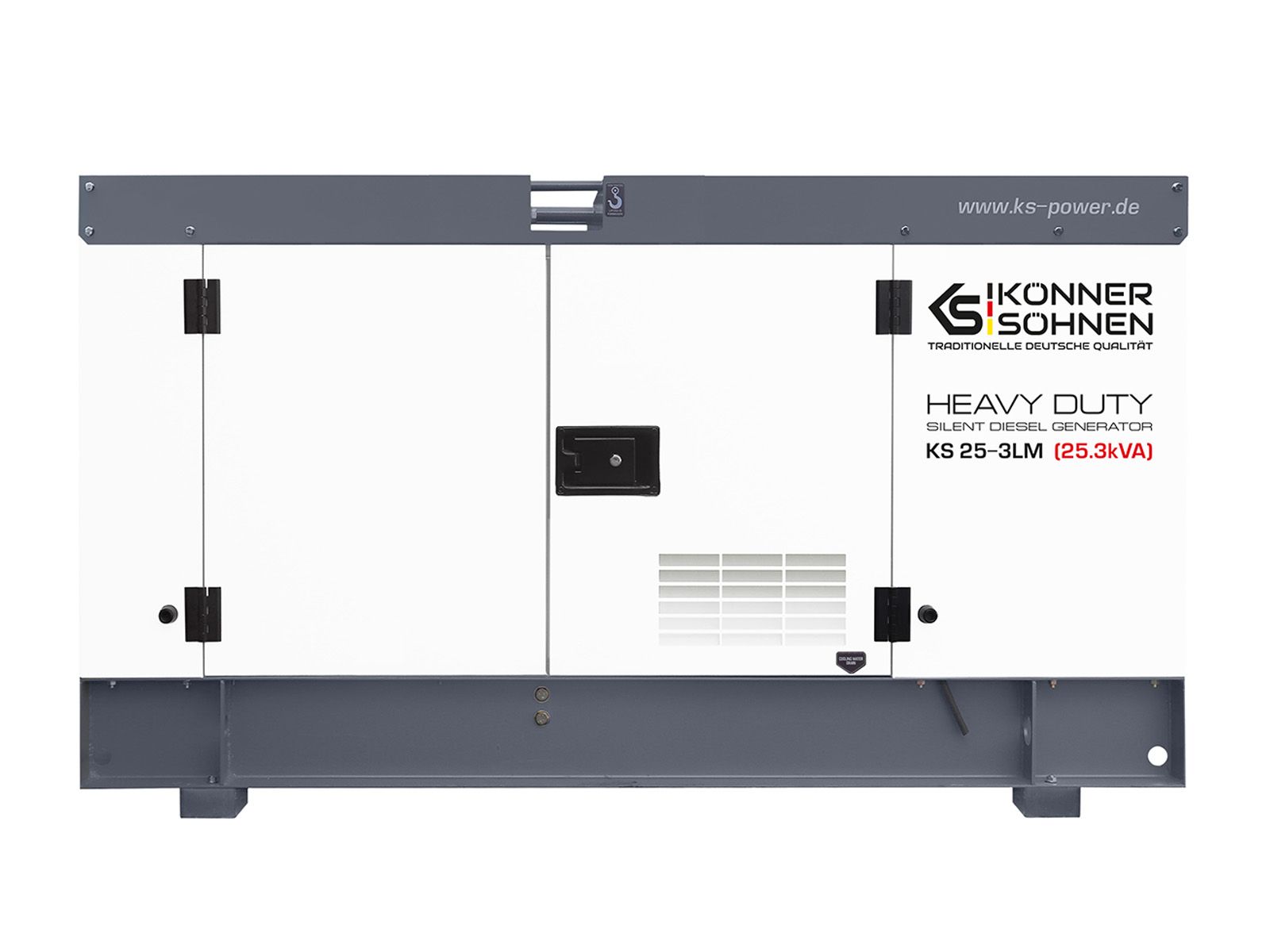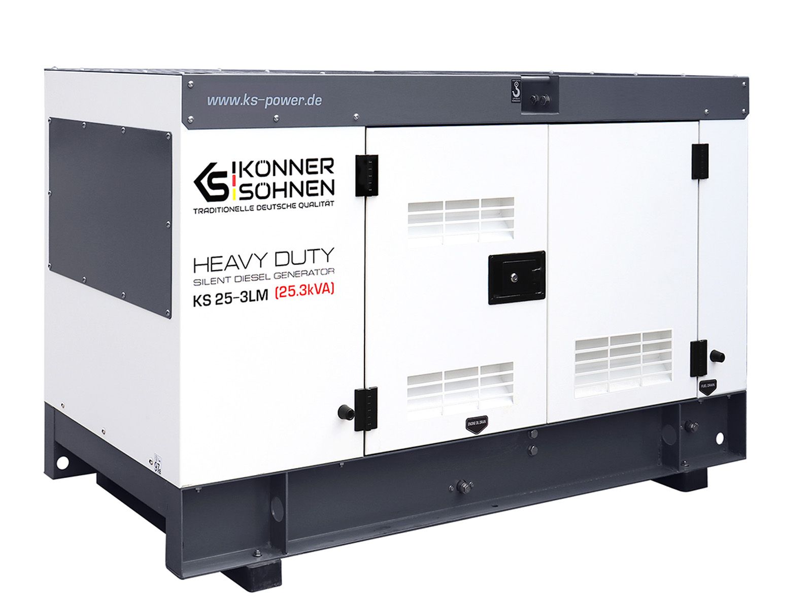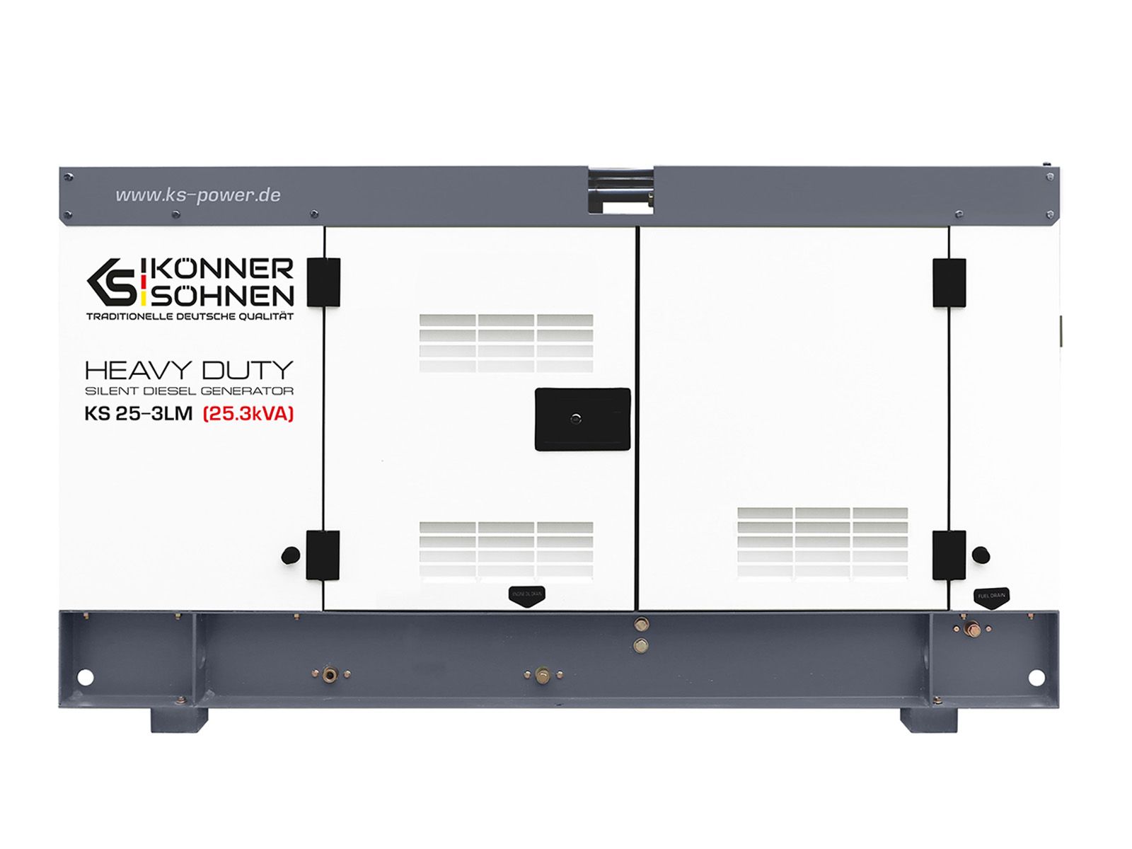 Дизельна трифазна електростанція KS 25-3LM серії HEAVY DUTY німецької торгової марки Könner & Söhnen - це надійна генераторна установка максимальною потужністю 25.3 кВА, що повністю відповідає високим європейським стандартам якості.