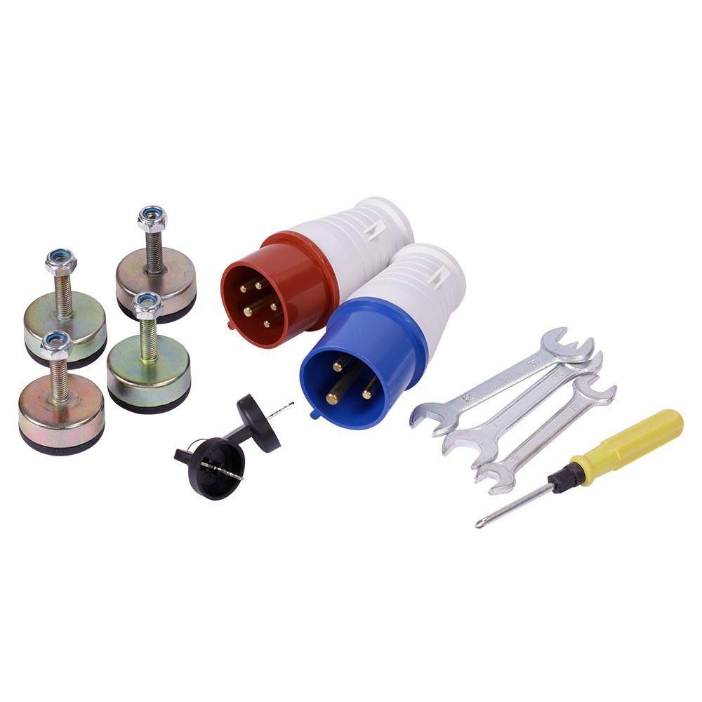 Генератор укомплектований додатковими аксесуарами: силова переносна вилка 3Р+Е+N, 16А, 400В, силова переносна вилка 2P+Е, 32А, 230В, ключ ріжковий 8*10 мм, ключ ріжковий 12*14 мм, ключ ріжковий 17*19 мм, викрутка двостороння 6.0 мм РН2.
