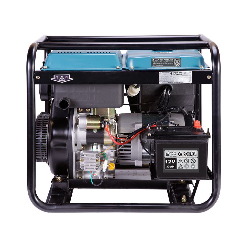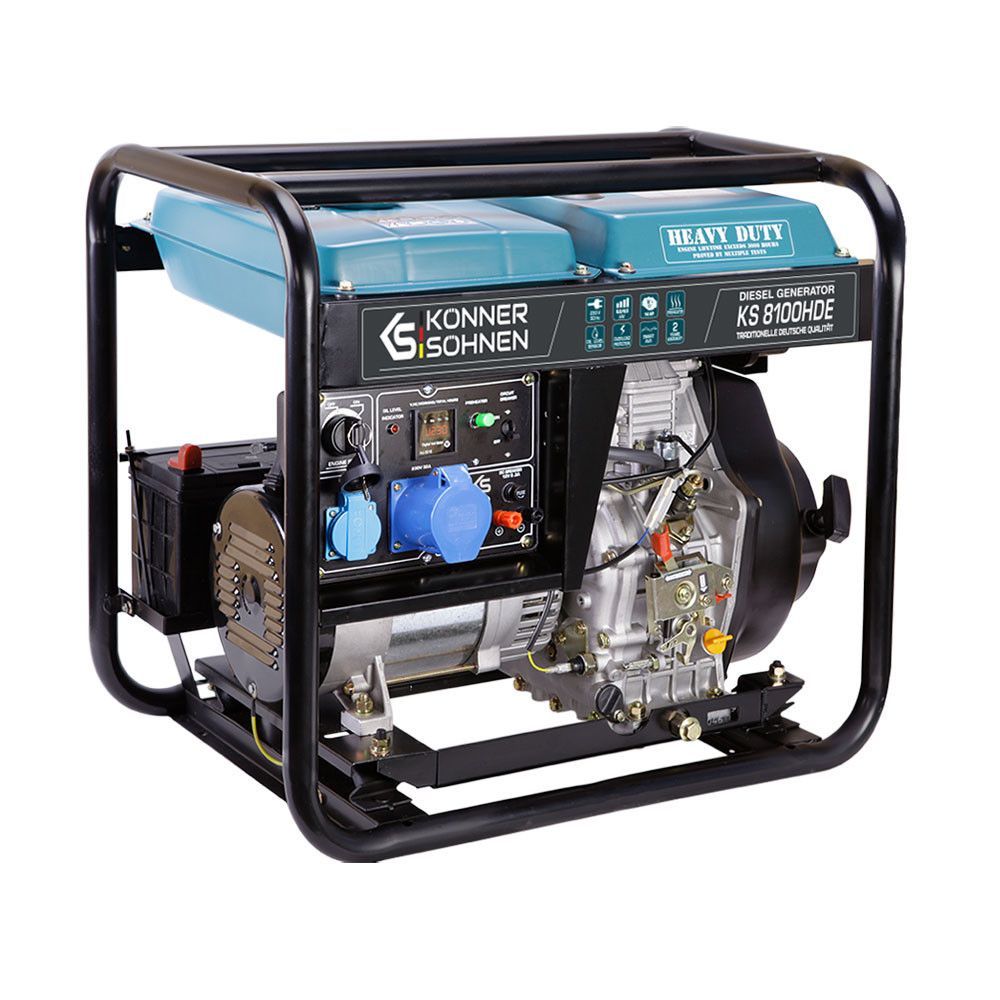 Дизельні генератори Könner & Söhnen® серії «HEAVY DUTY» мають збільшений моторесурс - тож мають більш тривалий термін служби, можуть працювати більшу кількість годин без перерви. Оновлена лінійка включає в себе моделі оснащені унікальною системою перемикання фаз VTS, що дозволяє використовувати один генератор в якості однофазного та трифазного практично без втрати потужності. Також, дизельні генератори оснащені універсальним АВР виходом для підключення блоку автоматичного вводу резерву. Всі генератори серії «HEAVY DUTY» оснащені функцією передстартового підігріву, що допоможе без проблем завести генератор в зимовий час. На генераторах встановлені акумулятори збільшеної ємності: 30 А·год.