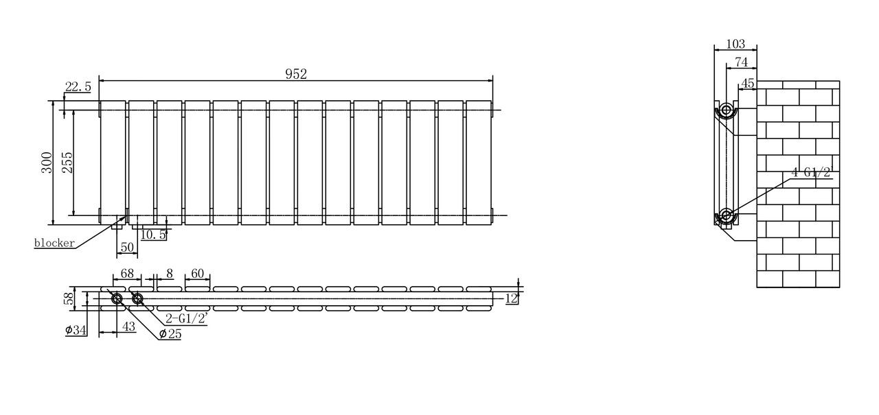 Розмір: висота — 300 мм. ширина — 952 мм.