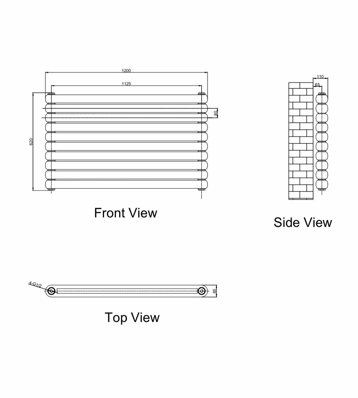 Горизонтальний дизайнерський радіатор опалення ARTTIDESIGN Sora 10/600/1200 сірий матовий