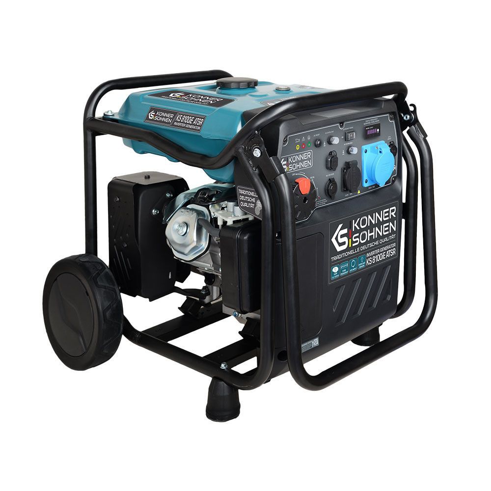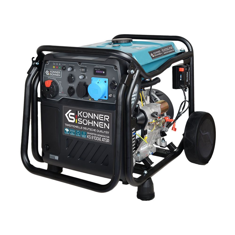 Генератор KS 8100iE ATSR німецької ТМ «Könner & Söhnen» — це зручне джерело електроенергії. Вбудований електронний блок з мікропроцесорним управлінням генератора забезпечує максимально стабільну частоту 50 Гц і напругу 230В. Має можливість підключення системи автоматичного введення резерву (АВР). Вихід АВР має 8-контактний роз’єм. Економічний режим дозволяє знизити витрату палива до 50% при малих навантаженнях завдяки зниженню оборотів двигуна. Альтернатор з мідною обмоткою і потужний двигун K&S гарантують безаварійне і тривале використання та відповідають всім європейським стандартам якості. Наявність LED-дисплея дає можливість якісніше контролювати роботу генератора і своєчасно проводити його технічне обслуговування.