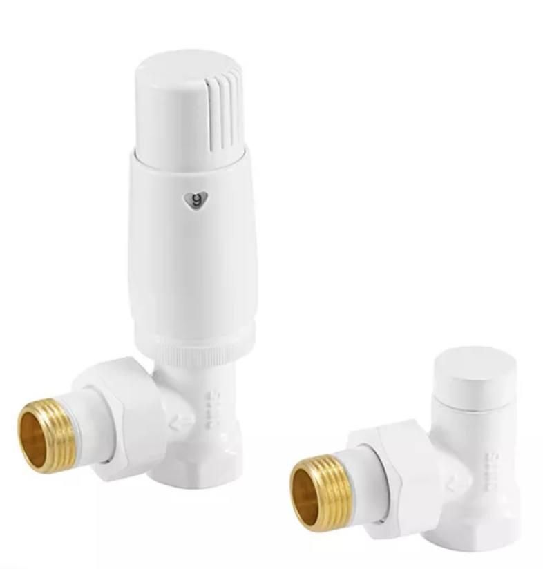 КРАН кутовий с термоголовкой 1/2” x 1/2” білий матовий