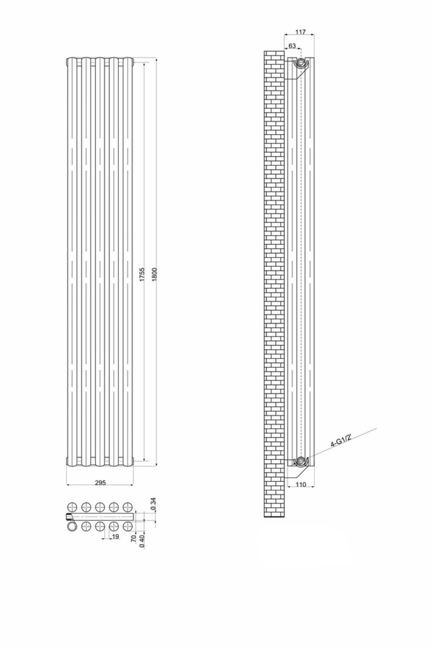 Вертикальний дизайнерський радіатор опалення ARTTIDESIGN Matera II 5/1800/295/50 сірий матовий