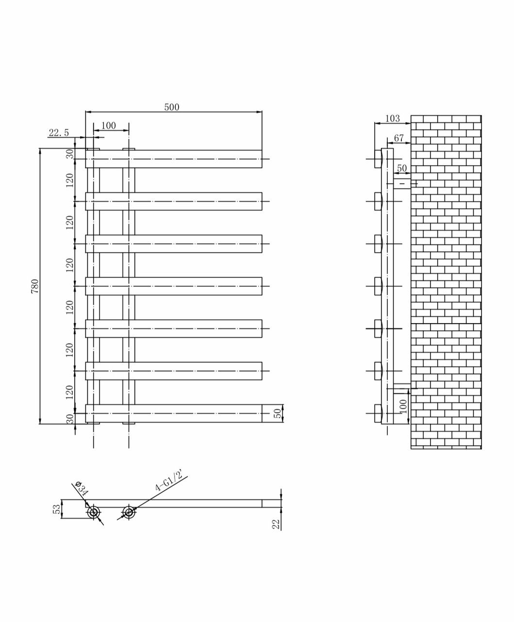 Дизайнерский полотенцесушитель Eze 7/780 чорний матовий