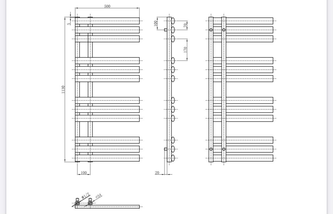Дизайнерский полотенцесушитель Grasse 12/1130 белый матовий