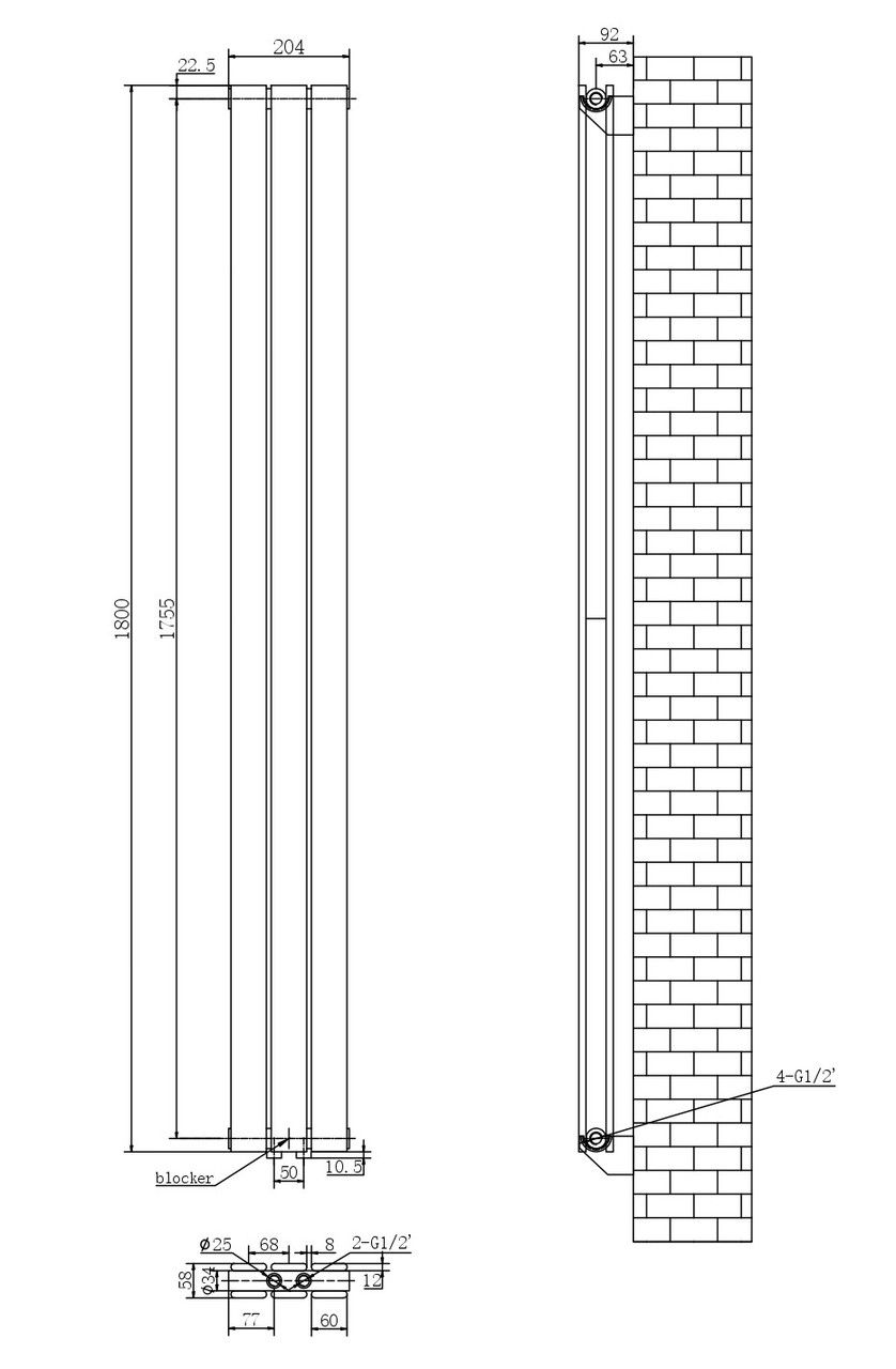 Дизайнерский вертикальный радиатор отопления ARTTIDESIGN Livorno II 3/1800/204/50 черный матовый.