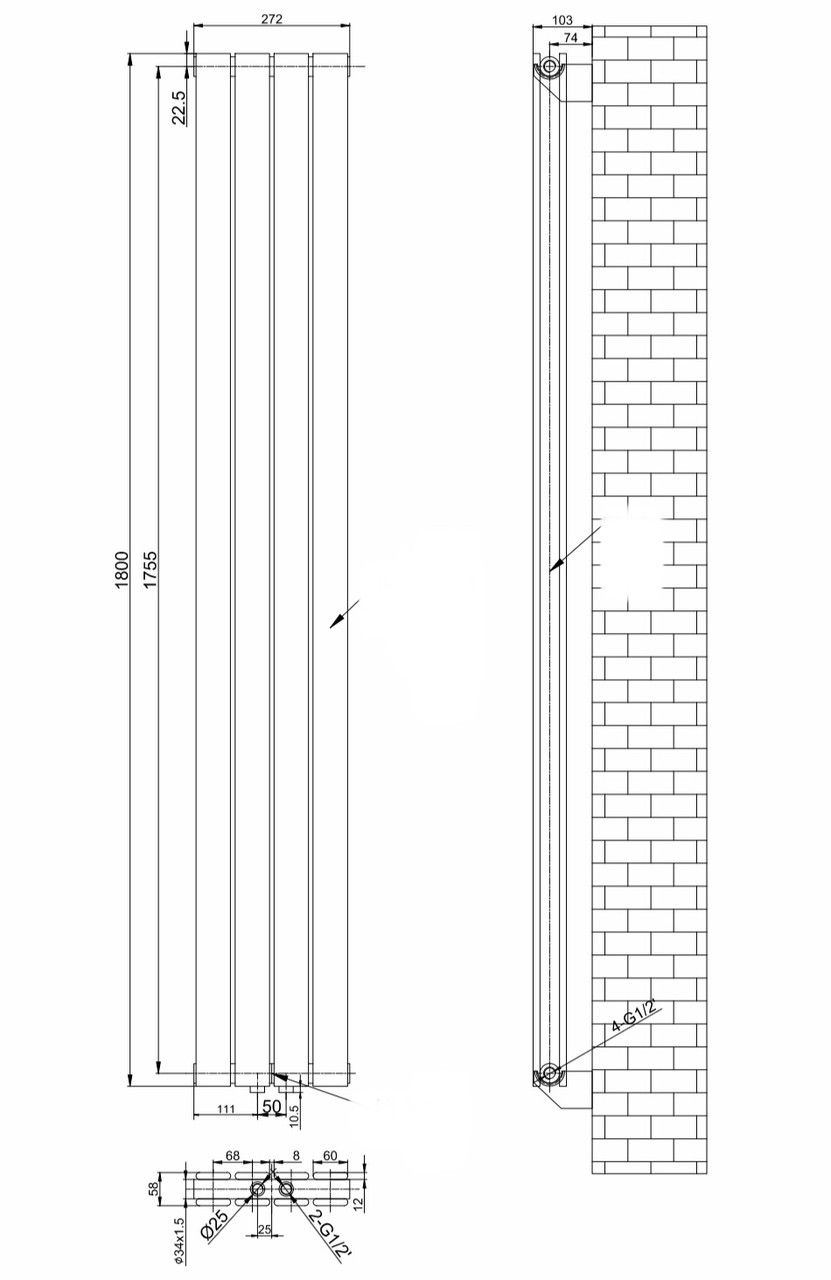 нижнее подключение по бокам 272 мм