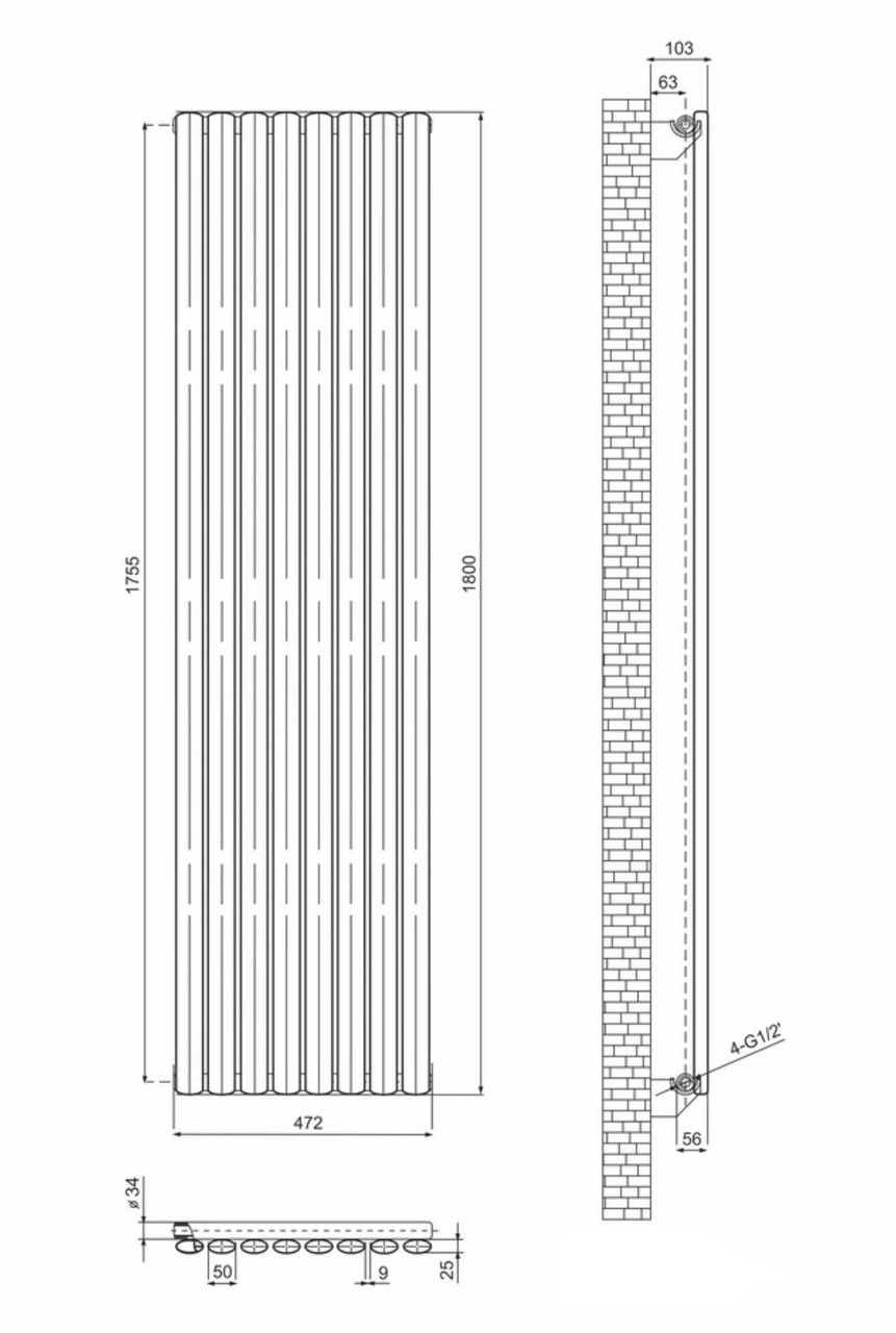 Дизайнерский вертикальный радиатор отопления ARTTIDESIGN Rimini 8/1800/472/50 белый матовий