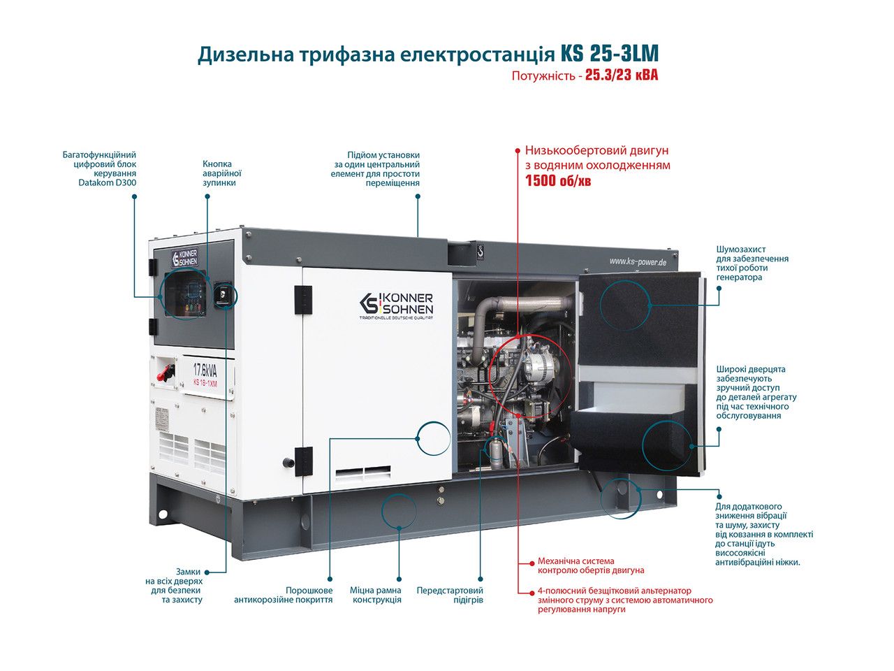 Опис Дизельна трифазна електростанція 25,3 кВА Konner & Sohnen KS 25-3LM