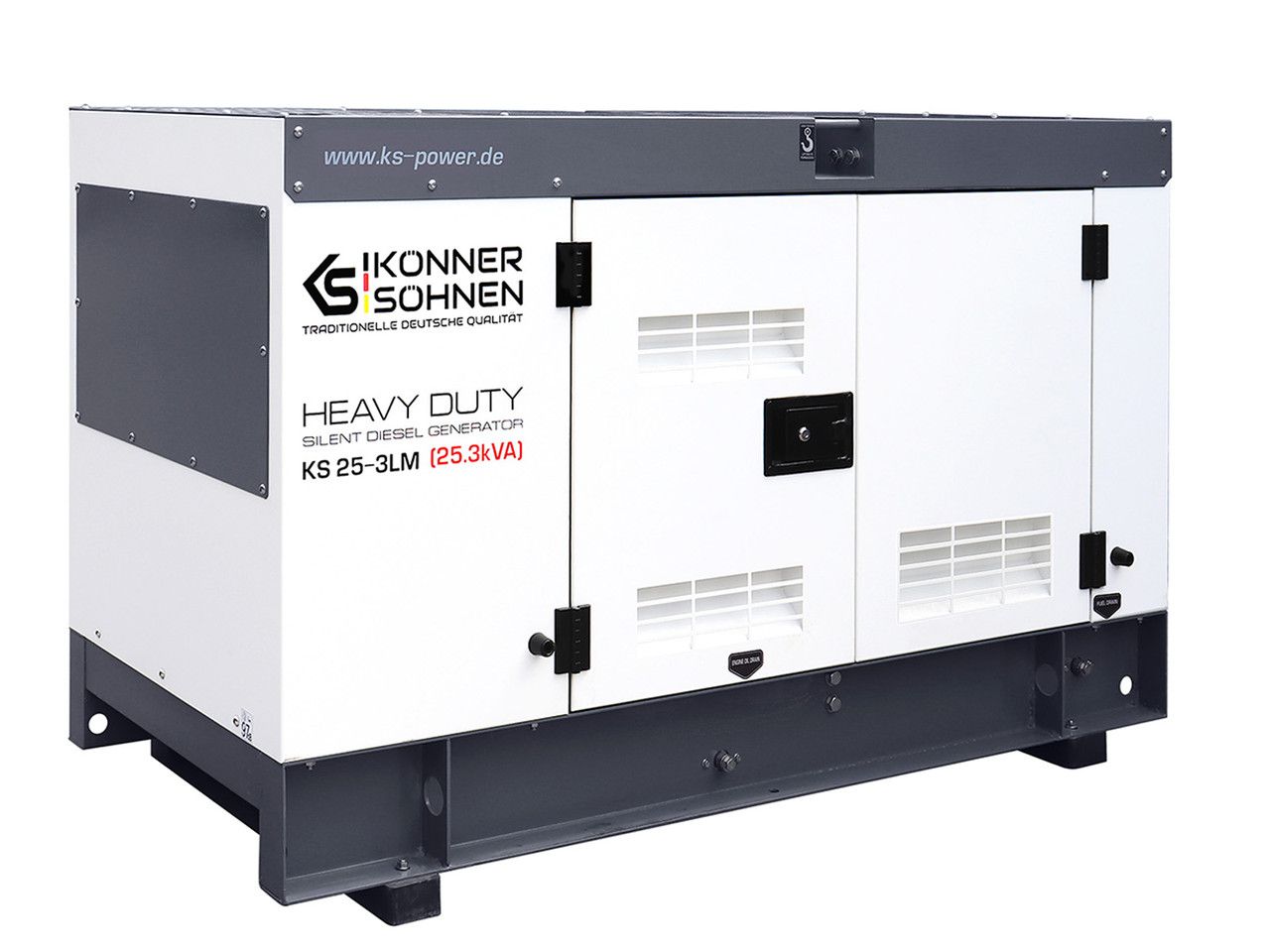 Дизельна трифазна електростанція KS 25-3LM серії HEAVY DUTY німецької торгової марки K?nner & S?hnen - це надійна генераторна установка максимальною потужністю 25.3 кВА, що повністю відповідає високим європейським стандартам якості.