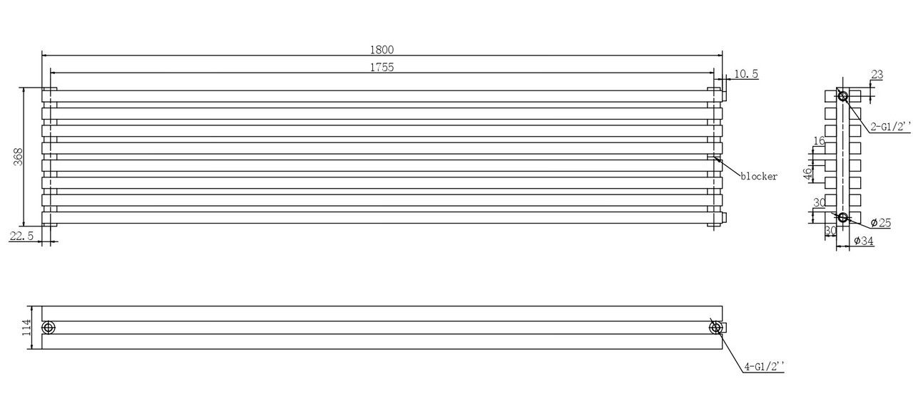 Горизонтальный дизайнерский радиатор отопления ARTTIDESIGN Ancona ІІ G 8/368/1800 чорний матовий