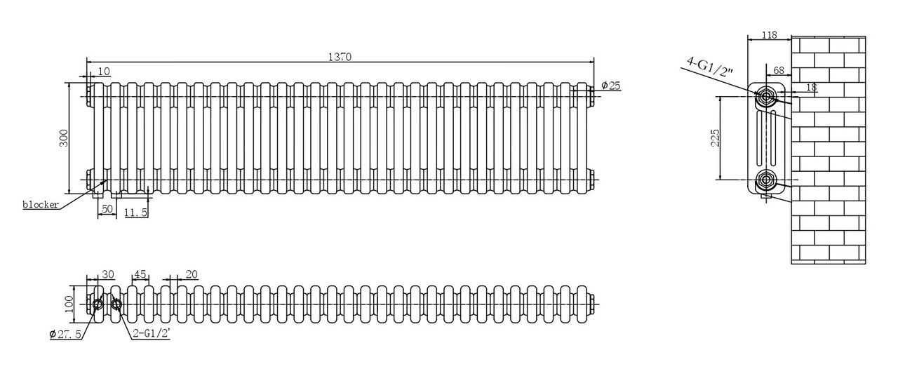 Размер: высота - 300 мм. ширина - 1370 мм.