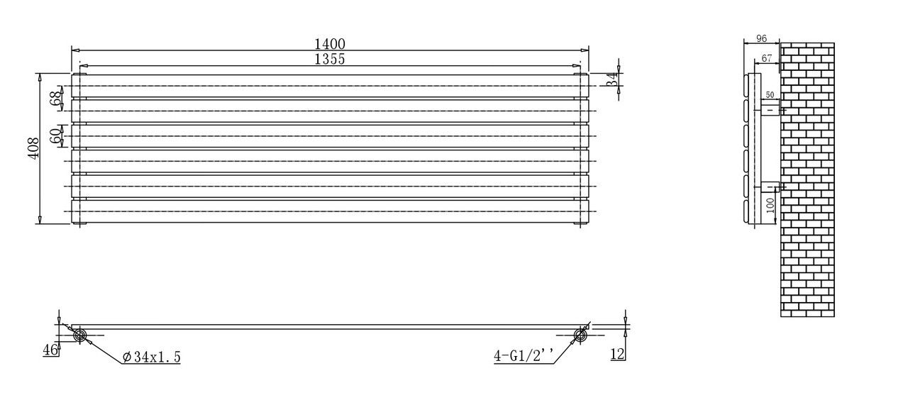 Горизонтальный дизайнерский радиатор отопления ARTTIDESIGN Livorno G 6/408/1400 белый матовый