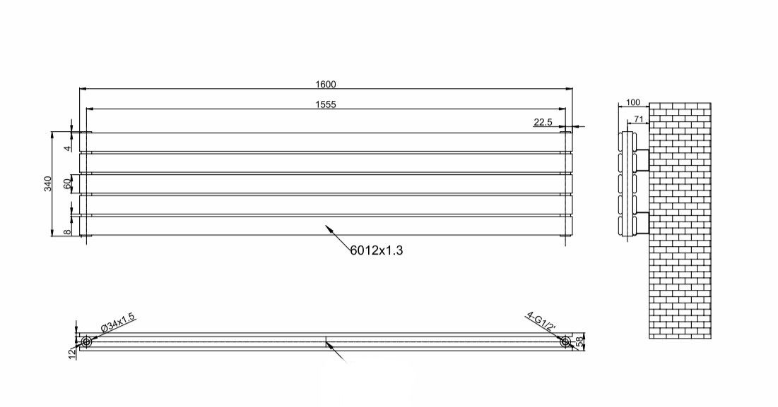 Горизонтальный дизайнерский радиатор отопления ARTTIDESIGN Livorno ІІ G 5/340/1600 чорний матовый