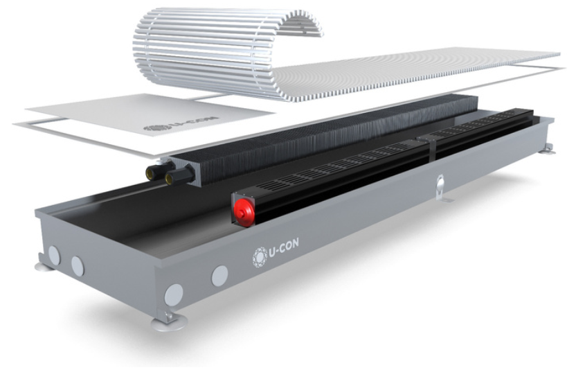 Внутрипольный конвектор U-CON c принудительной конвекцией серии VK-78 шириной 230 мм с 1 теплообменником 1/2 дюйма и тангенциальным вентилятором переменного тока AC 12V