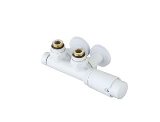 Термостатичний комплект ARTTIDESIGN призначений для нижнього підключення 50 мм "бінокль" радіатора або рушникосушки в двотрубної системі. Колір - білий матовий 9016. Різьба підключення зовнішня 1/2” x 1/2”.