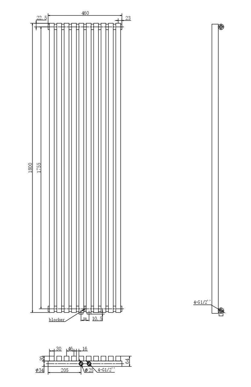 Вертикальный дизайнерский радиатор отопления ARTTIDESIGN Ancona 10/1800/460/50 белый матовый