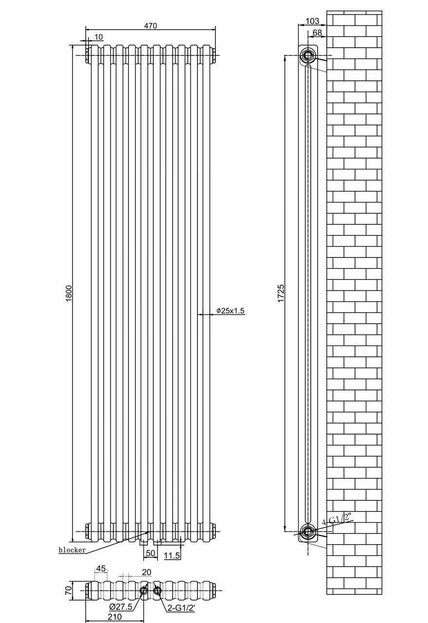Подключение теплоносителя:1/2"