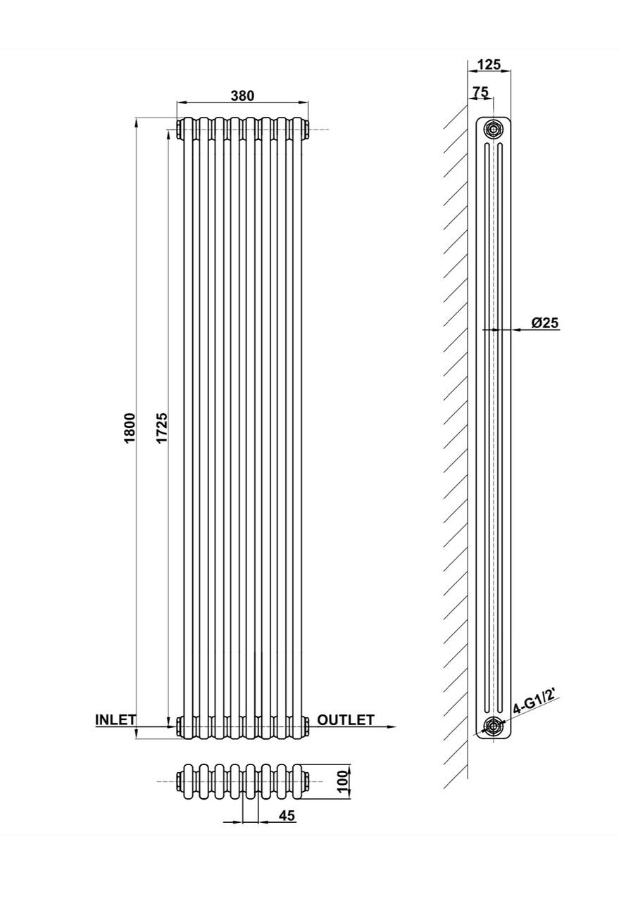Вертикальный дизайнерский радиатор отопления ARTTIDESIGN Bari III 8/1800/380/50 серий матовый