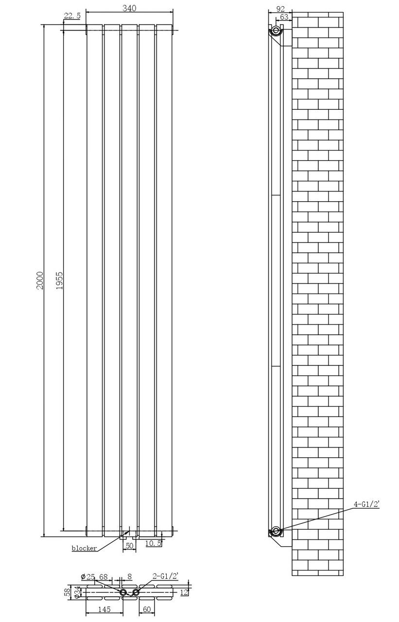 Вертикальный дизайнерский радиатор отопления ARTTIDESIGN Livorno II 5/2000/340/50 чёрный матовый