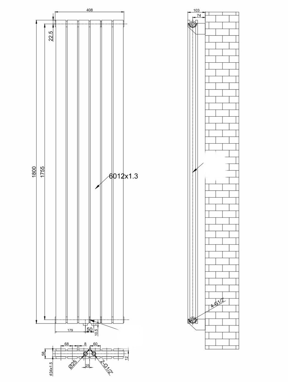Вертикальный дизайнерский радиатор отопления ARTTIDESIGN Livorno II 6/1800/408 белый матовый