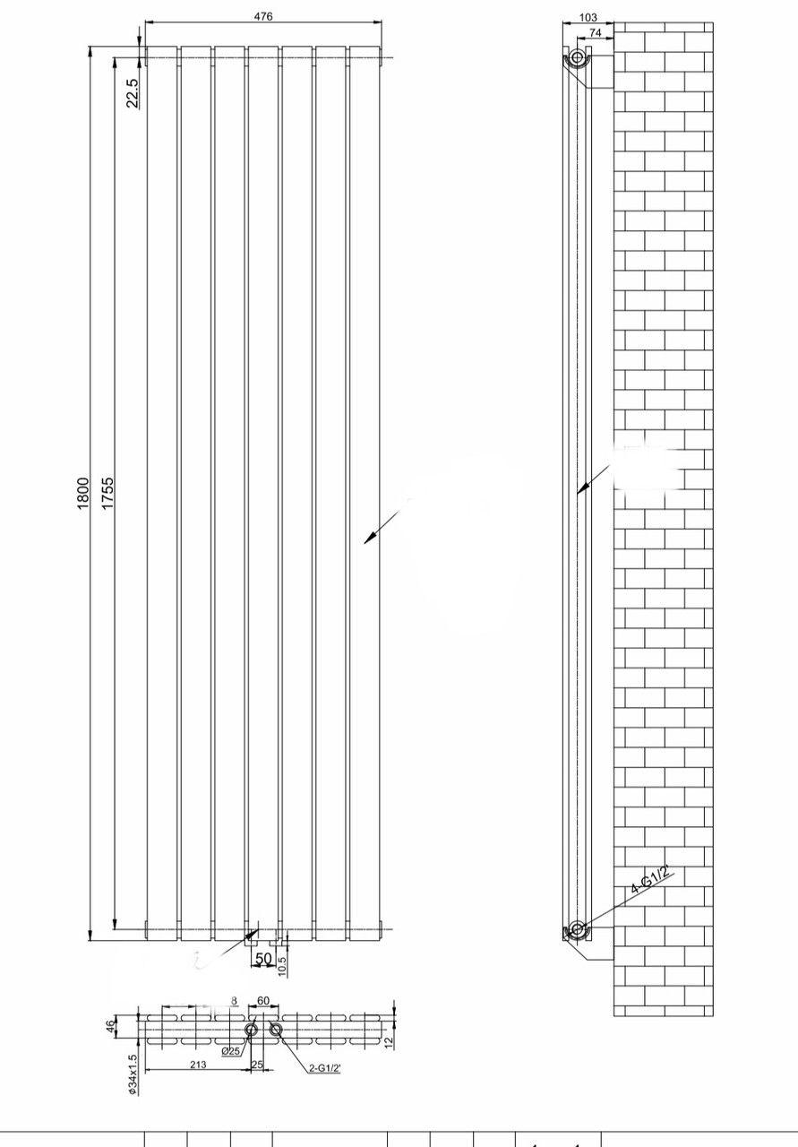 Вертикальный дизайнерский радиатор отопления ARTTIDESIGN Livorno II 7/1800/476/50 белый матовый