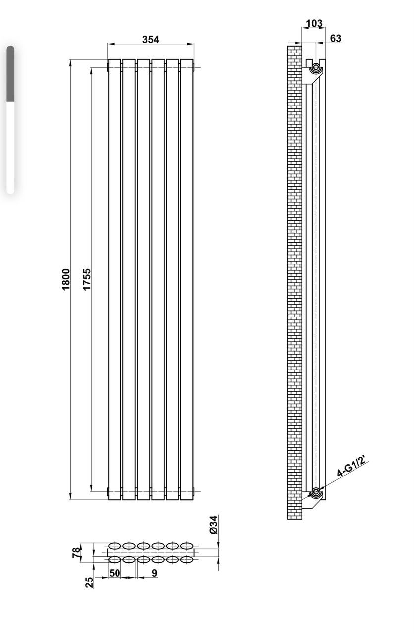 Размер: высота - 1800 мм, ширина - 354 мм.