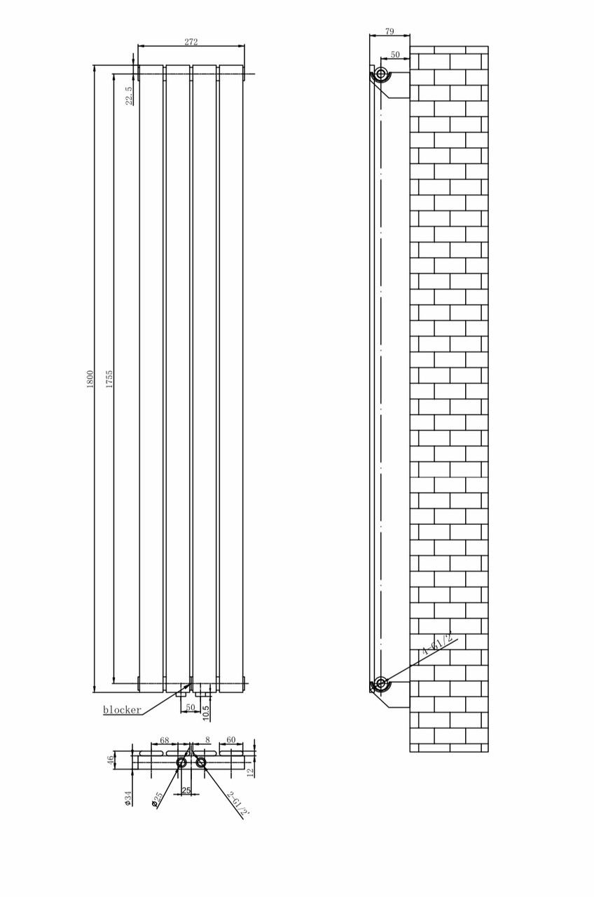 Дизайнерський вертикальний радіатор опалення ARTTIDESIGN Livorno 4/1800/272/50 чорний матовий