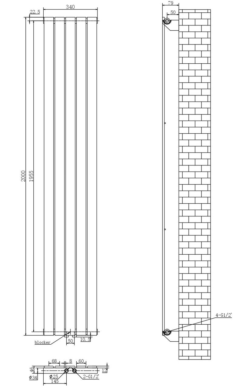 Розмір: висота – 2000 мм. ширина – 340 мм.