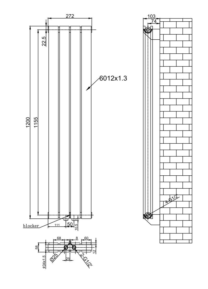 Дизайнерський вертикальний радіатор опалення ARTTIDESIGN Livorno II 4/1200/272/50 чорний матовий