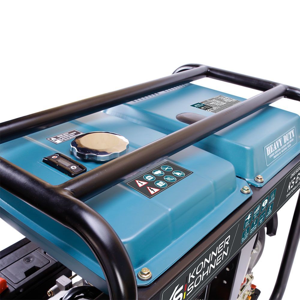 Дизельні генератори Könner & Söhnen® серії «HEAVY DUTY» мають збільшений моторесурс - тож мають більш тривалий термін служби, можуть працювати більшу кількість годин без перерви. Оновлена лінійка включає в себе моделі оснащені унікальною системою перемикання фаз VTS, що дозволяє використовувати один генератор в якості однофазного та трифазного практично без втрати потужності. Також, дизельні генератори оснащені універсальним АВР виходом для підключення блоку автоматичного вводу резерву. Всі генератори серії «HEAVY DUTY» оснащені функцією передстартового підігріву, що допоможе без проблем завести генератор в зимовий час. На генераторах встановлені акумулятори збільшеної ємності: 30 А·год.