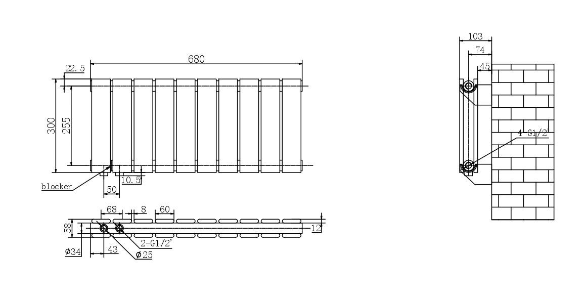 Горизонтальний дизайнерський радіатор опалення ARTTIDESIGN Livorno II G 10/300/680/50 чорний матовий