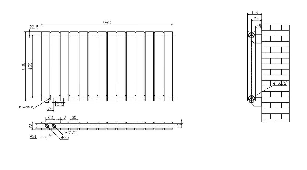 Горизонтальний дизайнерський радіатор опалення ARTTIDESIGN Livorno ІІ G 14/500/952/50 білий матовий