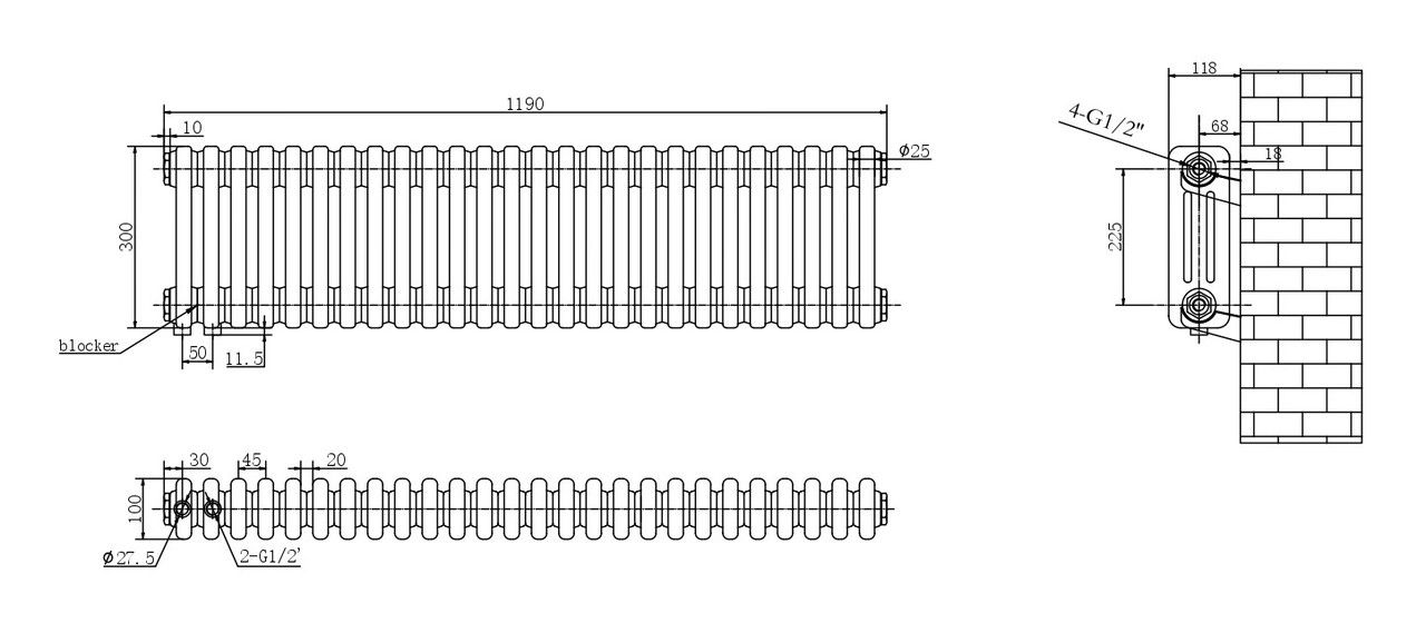Розмір: висота — 300 мм. ширина — 1190 мм.