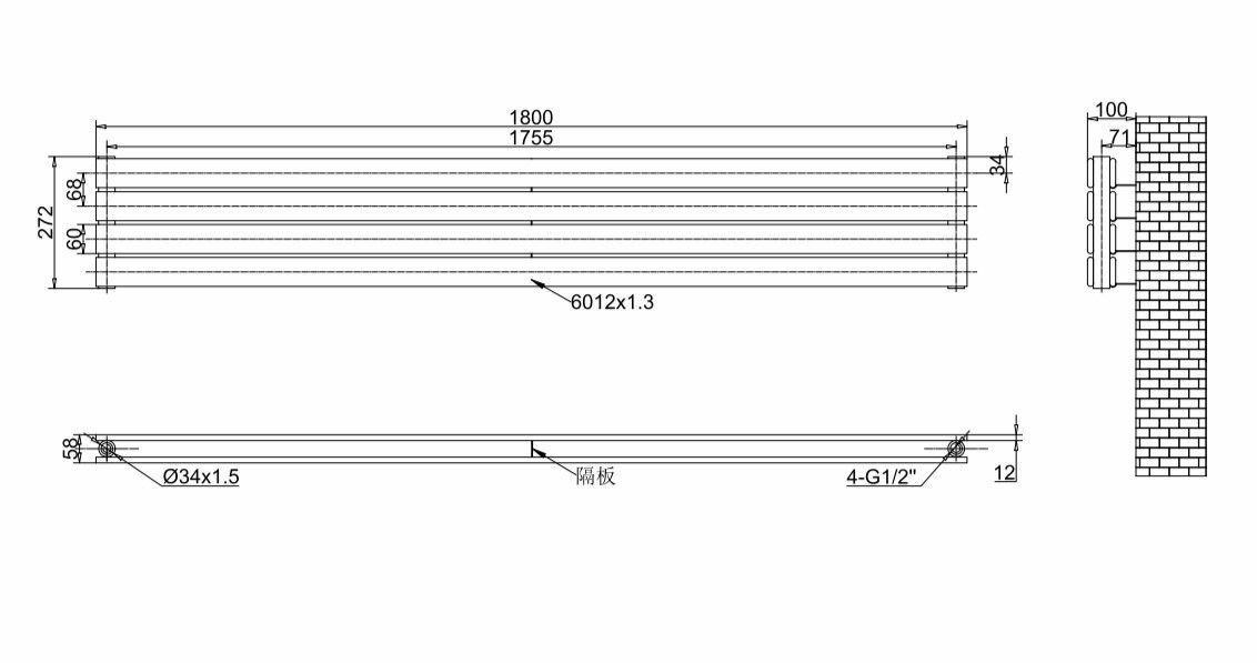 Розмір: висота — 272 мм. ширина — 1800 мм.