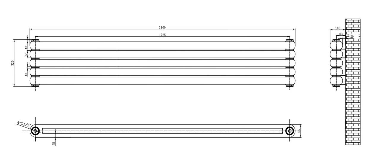 Горизонтальний дизайнерський радіатор опалення ARTTIDESIGN Sora 5/320/1800 білий матовий