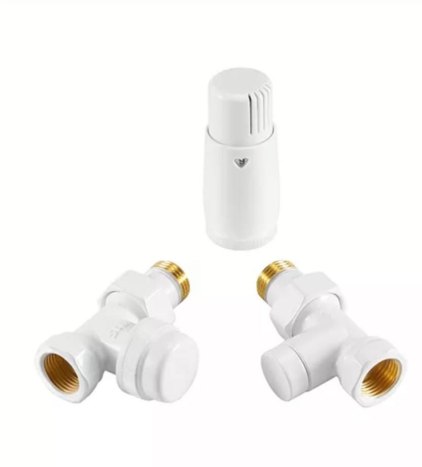 Комплект кранів прямих с термоголовкой 1/2” x 1/2” білий матовий
