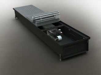Принцип роботи: Холодне повітря від віконних поверхонь рухається до каналу конвектора. Тут він нагрівається теплообмінником і піднімається вгору під впливом температури. Внутрішньопідлогові конвектори, інстальовані між вікнами або скляними фасадами і простором кімнати, служать температурним бар'єром, запобігають руху холоду від вікна до приміщення.