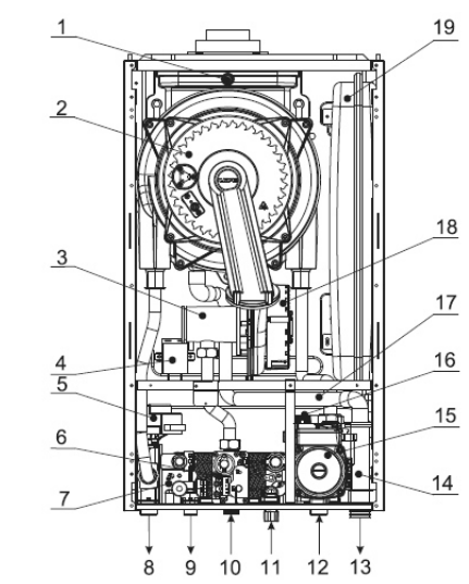 - Закрита камера згорання (прессостат, вентилятор, трубка збору конденсату);