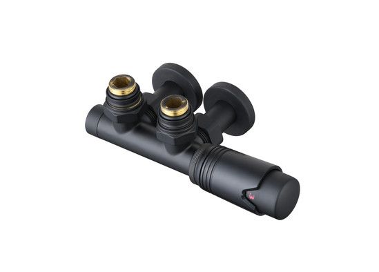 Термостатичний комплект ARTTIDESIGN призначений для нижнього підключення 50 мм "бінокль" радіатора або рушникосушки в двотрубної системі. Колір - чорний матовий 9005. Різьба підключення зовнішня 1/2” x 1/2”.