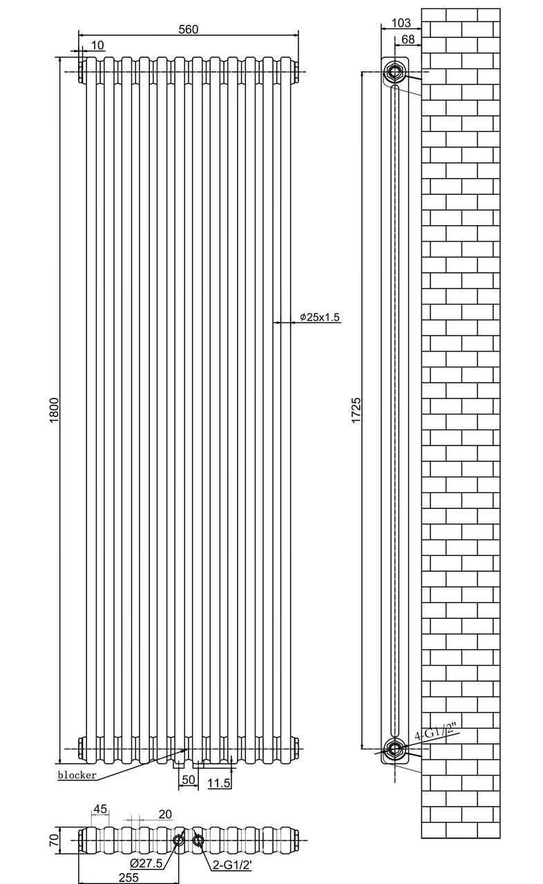 Розмір: висота – 1800 мм. ширина – 560 мм.