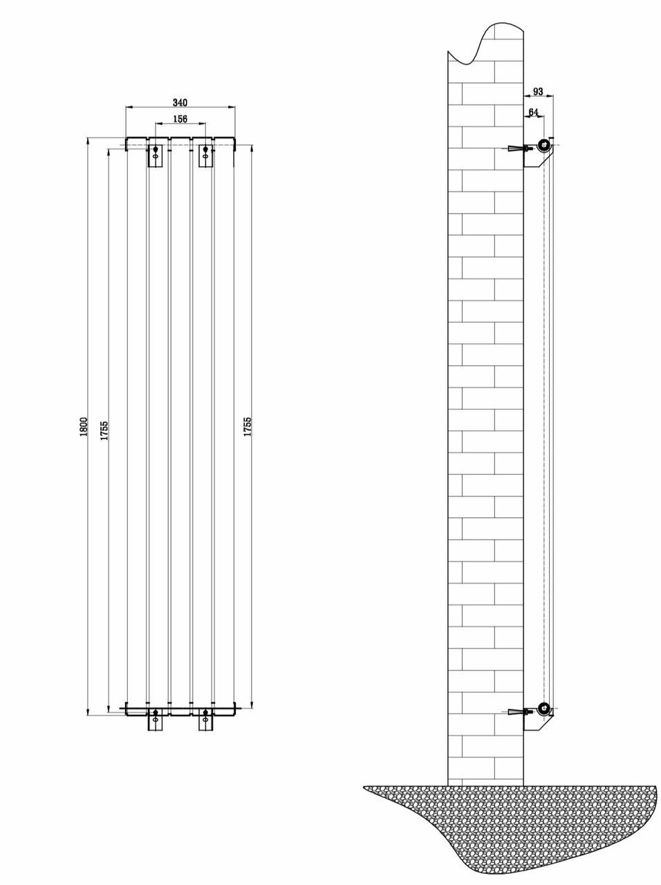 Вертикальний дизайнерський радіатор опалення ARTTIDESIGN Livorno 5/1800/340/50 чорний матовий