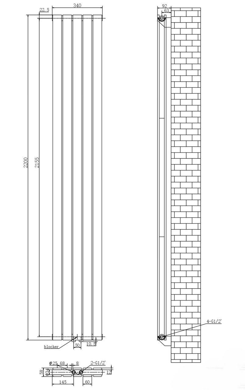 Вертикальний дизайнерський радіатор опалення ARTTIDESIGN Livorno II 5/2200/340/50 чорний матовий