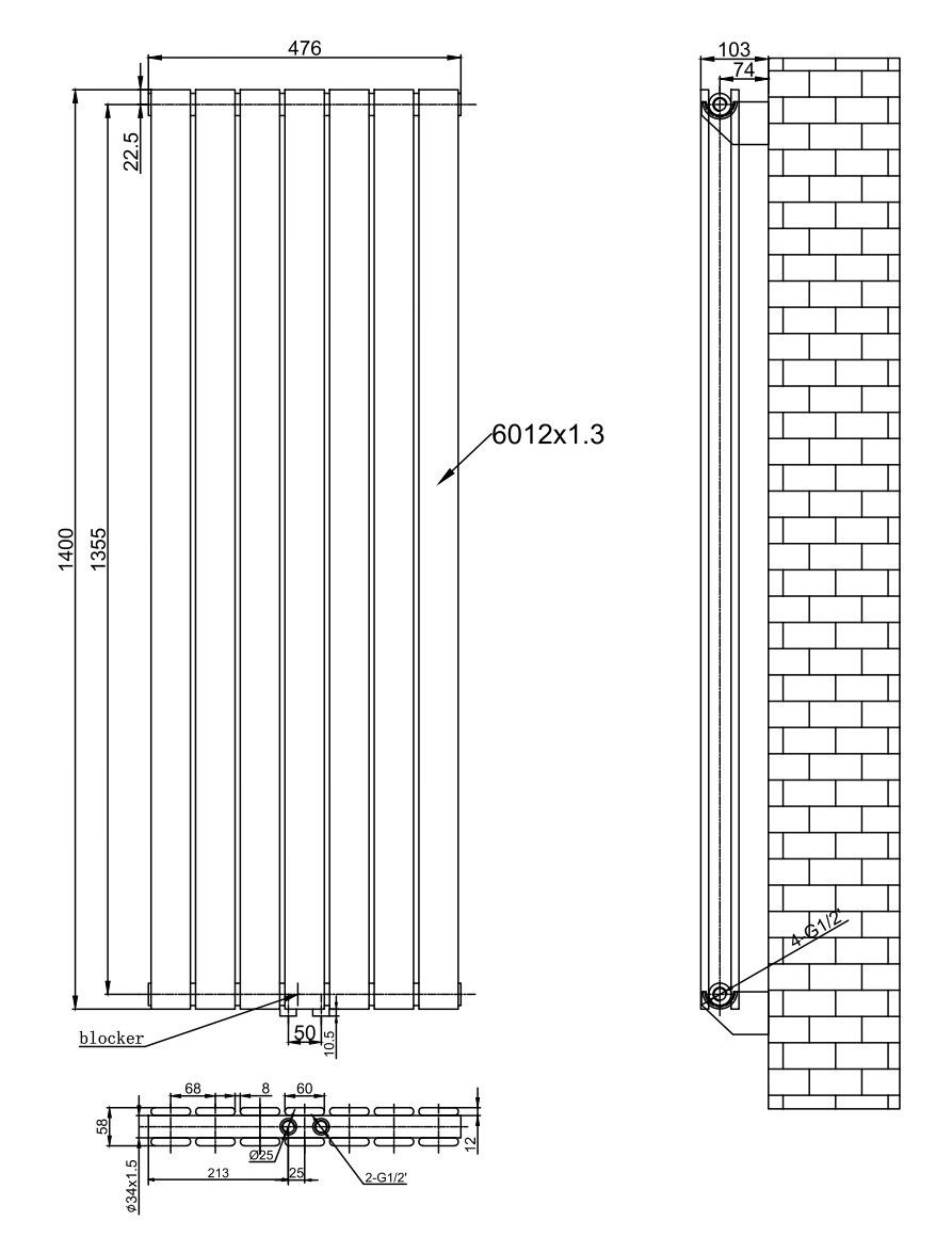Вертикальний дизайнерський радіатор опалення ARTTIDESIGN Livorno II 7/1400/476/50 чорний матовий