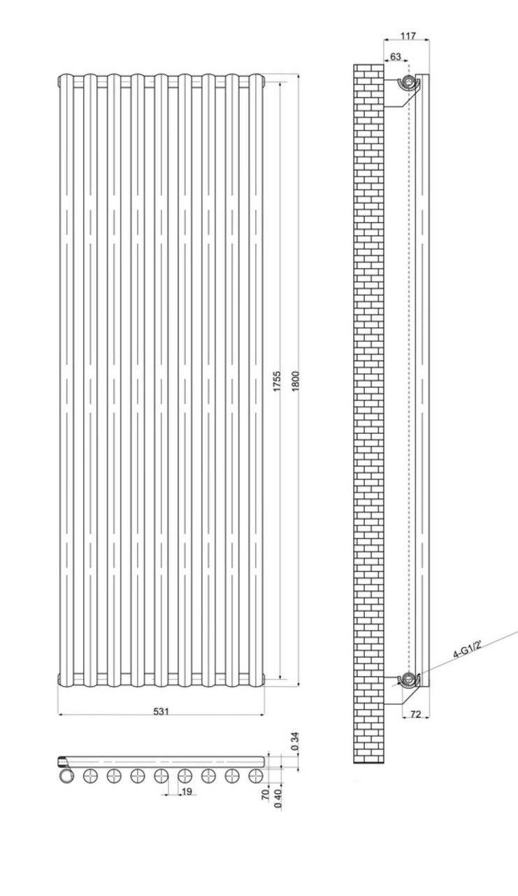 Вертикальний дизайнерський радіатор опалення ARTTIDESIGN Matera 9/1800/531/50 чорний матовий