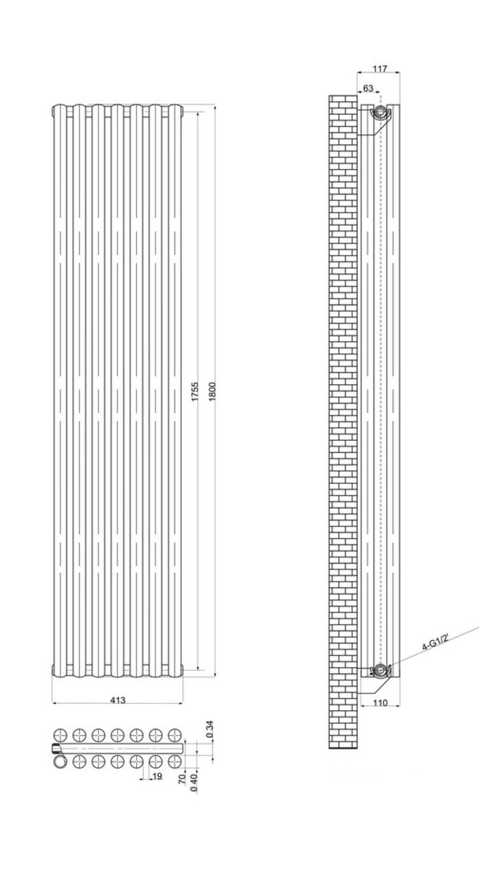 Вертикальний дизайнерський радіатор опалення ARTTIDESIGN Matera II 7/1800/413/50 сірий матовий